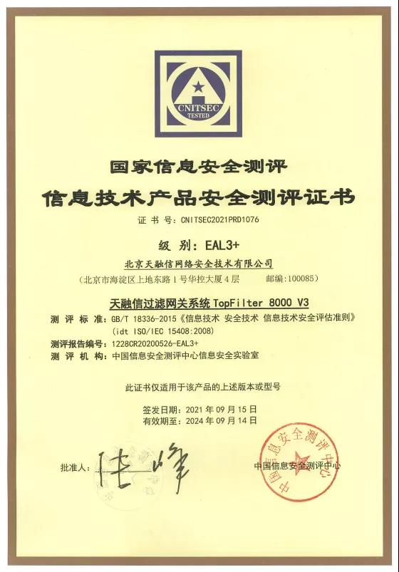 ¾ÓÉÖйúÐÅÏ¢Çå¾²²âÆÀÖÐÐÄ×ۺϲâÊÔÓëÆÀ¹À£¬£¬£¬£¬×¯ÏÐÓÎÏ·¹ýÂËÍø¹Ø²úƷ˳Ëìͨ¹ý²úÆ·Çå¾²ÐÔ¡¢±£ÃÜÐÔ¡¢ÍêÕûÐÔÒÔ¼°¿ÉÓÃÐÔ¡¢¿É¿¿ÐÔ²âÊÔÓëÉóºËµÈ£¬£¬£¬£¬µÖ´ï EAL3+ ¼¶±ðµÄ¸÷ÏîÒªÇ󣬣¬£¬£¬»ñµÃÐÅÏ¢ÊÖÒÕ²úÆ· EAL3+ ¼¶Çå¾²²âÆÀÖ¤Ê飬£¬£¬£¬³ä·ÖÓ¡Ö¤ÁËׯÏÐÓÎÏ·¹ýÂËÍø¹Ø²úÆ·µÄ×ÛºÏʵÁ¦¡£¡£¡£¡£¡£