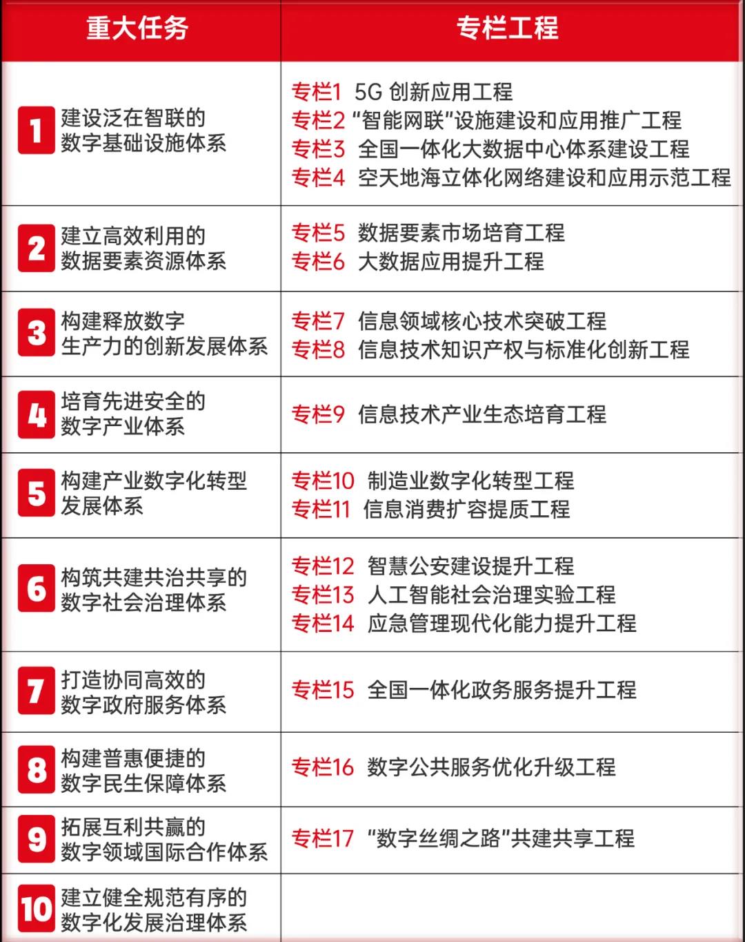¡¶ÍýÏë¡·Î§ÈÆÆß´óÉú³¤Ä¿µÄ£¬£¬£¬´ÓÊý×Ö»ù´¡ÉèÊ©½¨Éèˮƽ¡¢Ê©Õ¹Êý¾ÝÒªËØ¼ÛÖµ¡¢ÔöÇ¿Êý×ÖÊÖÒÕÁ¢ÒìÄÜÁ¦¡¢Íƶ¯Êý×Ö¾¼Ã¸ßÖÊÁ¿Éú³¤¡¢ÍƽøÊý×ÖÉç»á½¨Éè¡¢ÌáÉýÊý×ÖÕþ¸®½¨Éèˮƽ¡¢ÔöÇ¿Êý×ÖÃñÉú°ü¹ÜÄÜÁ¦¡¢ÍêÉÆÊý×Ö»¯Éú³¤ÇéÐεȷ½Ãæ¹²°²ÅÅÁË10ÏîÖØ´óʹÃüºÍ17ÀàרÀ¸¹¤³Ì£¬£¬£¬Ïà¹ØÏêÇé¼ûÏÂ±í£º