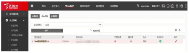 2¡¢È·ÈÏ¿ªÆô·À»¤¹æÔò£º¡¾Web·À»¤¡¿¡ú¡¾Çå¾²Õ½ÂÔ¡¿¡ú¡¾¹æÔò¿â¡¿¡ú¡¾½¹µã¹æÔò¡¿ËÑË÷ID£º1030006 Éó²éÆôÓÃ״̬£»£»