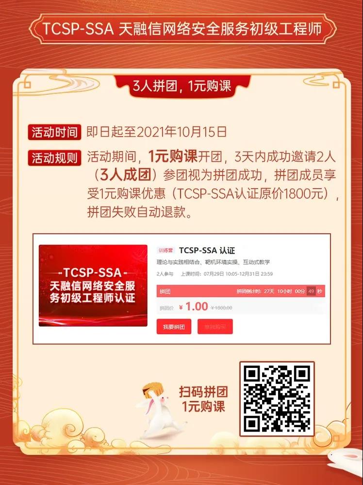 Ô˶¯Ê±´ú£¬£¬£¬£¬1Ôª¹º¿Î¿ªÍÅ£¬£¬£¬£¬3ÌìÄÚÀÖ³ÉÔ¼Çë2ÈË£¨3È˳ÉÍÅ£©²ÎÍÅÊÓΪƴÍÅÀֳɣ¬£¬£¬£¬Æ´ÍųÉÔ±ÏíÊÜ1Ôª¹º¿ÎÓŻݣ¨TCSP-SSAÈÏÖ¤Ô¼Û1800Ôª£©£¬£¬£¬£¬Æ´ÍÅʧ°Ü×Ô¶¯Í˿¡£¡£¡£¡£