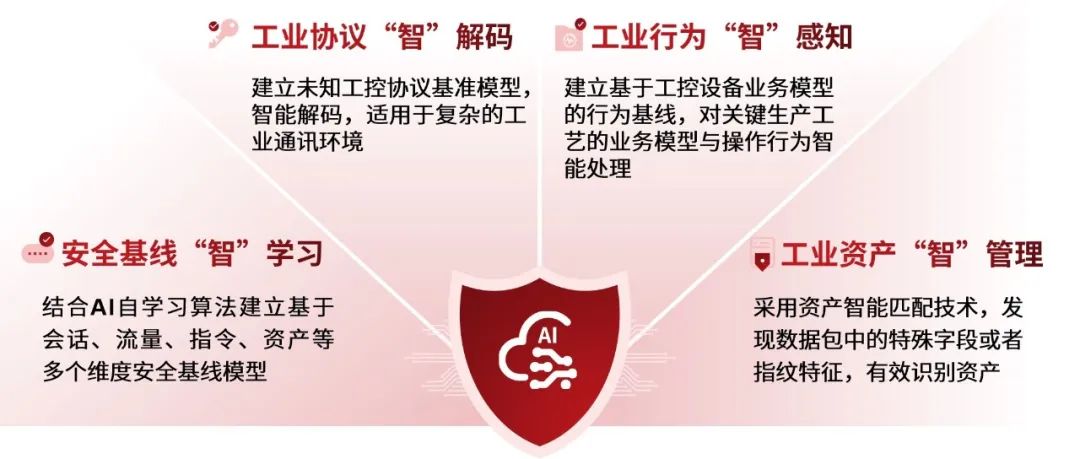 工业网络中装备众多、网络通讯重大,,,客户很难周全掌握网络中所必需的营业通讯需求,,,给清静装备的规则设置带来极大难题。。。。庄闲游戏工控清静监测审计系统通过对通讯数据的一连监听,,,对工控协议的深度剖析,,,并连系AI自学习算法,,,建设基于会话、流量、指令和资产等多个维度清静基线模子。。。。通过人工对清静基线模子举行校对剖析,,,确认无误后,,,将AI自学习基线加入可信白名单,,,一是通过比照将偏离基线的行为举行告警,,,二是支持将告警事务一键加入可信白名单,,,从而一连自动纠正并完善清静基线模子。。。。