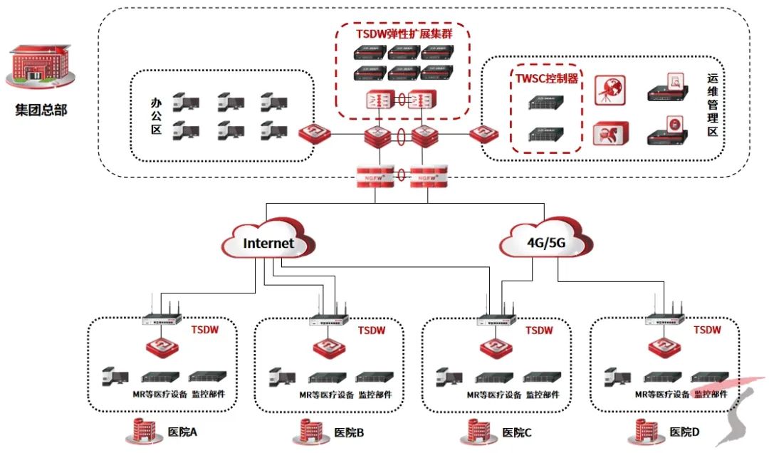 Ò½ÁÆ»ú¹¹²àÇå¾²Íø¹ØÓë¿Í»§×ܲ¿²à¸ßÐÔÄÜׯÏÐÓÎÏ·±ßÑØÇ徲·ÓÉÍø¹Ø×°±¸£¨TSDW£©½¨ÉèIPSECËíµÀ£¬£¬£¬Í¬Ê±¿ªÆôÁ¢ÌåÇå¾²·À»¤¹¦Ð§£¬£¬£¬°ü¹ÜMRµÈÒ½ÁÆ×°±¸ÒÔ¼°¼à¿Ø²¿¼þÓë×ܲ¿Êý¾ÝÖÐÐľÙÐÐÇå¾²µÄÊý¾Ý´«Êä¡£¡£