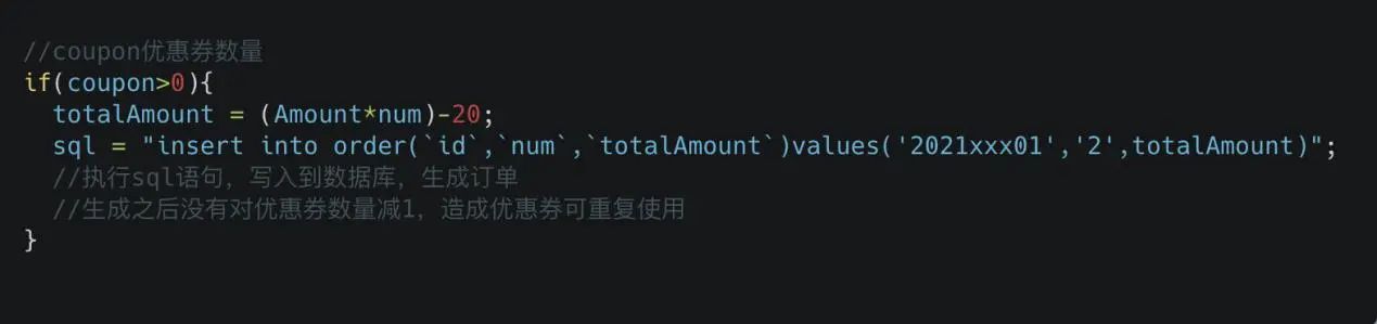 ÔÚÌìÉú¶©µ¥Ê±£¬£¬£¬Ó¦µ±ÅжÏÓÅ»ÝȯÊýÄ¿£¬£¬£¬ÌìÉúÒ»¸ö¶©µ¥Ö®ºóÒª°Ñ¶ÔӦʹÓõÄÓÅ»ÝȯÏû³ý£¬£¬£¬²»¿ÉÔÚÏ´ÎÌìÉú¶©µ¥Ê±Ê¹Óᣡ£¡£¡£ÏÂͼԴÂëÖУ¬£¬£¬Ö»ÅжÏÁËÓÅ»ÝȯÊÇ·ñ´óÓÚ0£¬£¬£¬ÈôÊÇ´óÓÚ0£¬£¬£¬Ö±½Ó¾Í¾ÙÐвåÈëÊý¾Ý¿âµÄ²Ù×÷£¬£¬£¬²¢ÇÒÔÚ²åÈëÊý¾Ý¿âÖ®ºóûÓаѶÔÓ¦µÄÊýÄ¿¼õ1£¬£¬£¬Ôì³ÉÓÅ»Ýȯһֱ¿ÉÒÔʹÓᣡ£¡£¡£