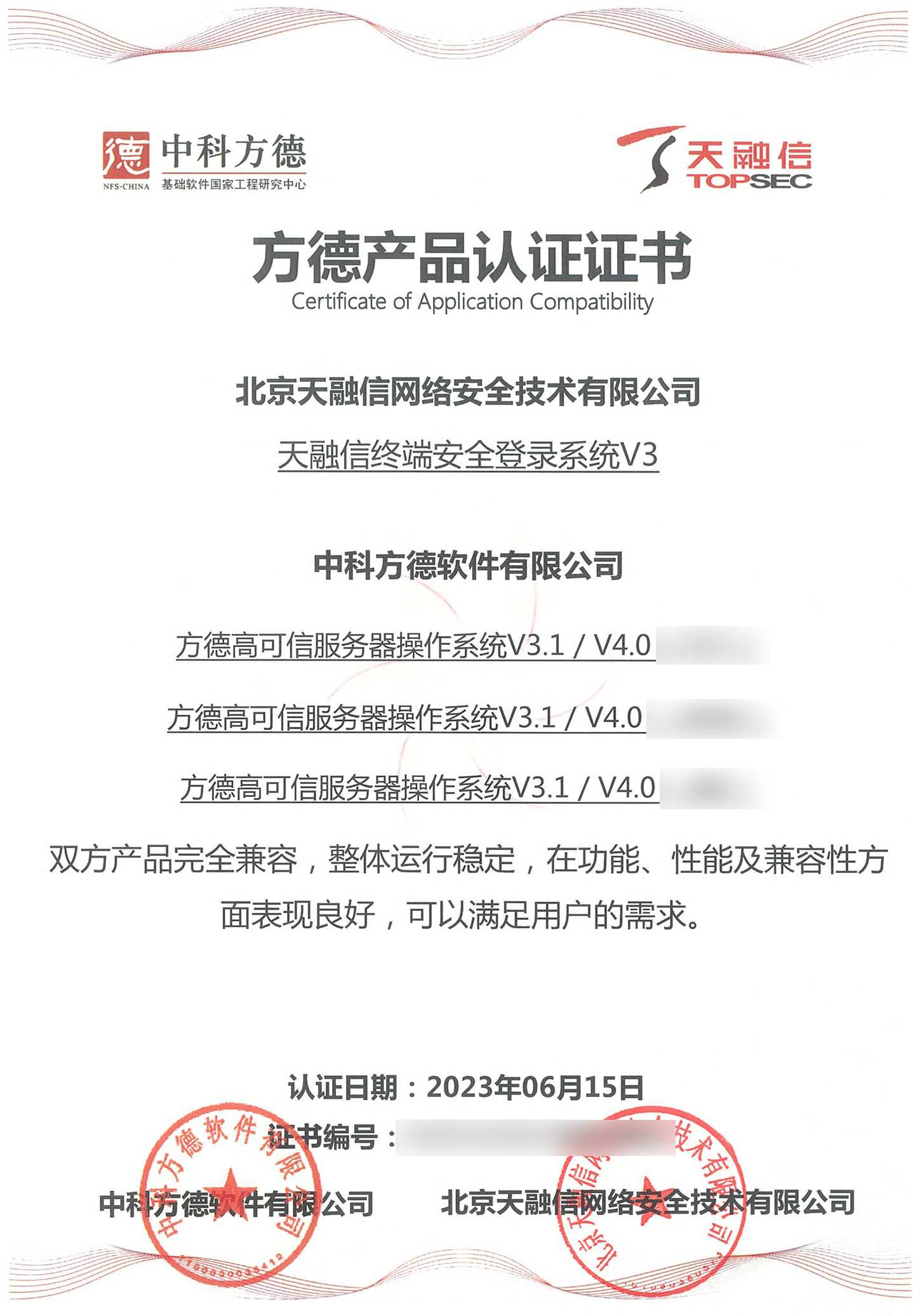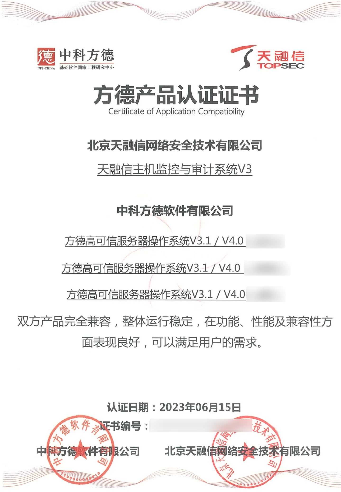 ¿ËÈÕ£¬£¬£¬£¬£¬×¯ÏÐÓÎÏ·À¥ÂØÏµÁÐÖÕ¶ËÍþв·ÀÓùϵͳ¡¢Ö÷»ú¼à¿ØÓëÉó¼ÆÏµÍ³¡¢ÖÕ¶ËÇå¾²µÇ¼ϵͳ¡¢Ö÷»úÎļþ¼à²âϵͳ¡¢´òÓ¡¼°¿Ì¼Çå¾²¼à¿ØÓëÉó¼ÆÏµÍ³¡¢Ð§ÀÍÆ÷Éó¼ÆÏµÍ³ÓëÖпƷ½µÂ×ÀÃæ²Ù×÷ϵͳV5¼°·½µÂ¸ß¿ÉÐÅЧÀÍÆ÷²Ù×÷ϵͳV3.1 / V4.0Íê³É¼æÈÝÈÏÖ¤¡£¡£¡£¡£Ë«·½²úÆ·ÍêÈ«¼æÈÝ£¬£¬£¬£¬£¬ÕûÌåÔËÐÐÎȹ̣¬£¬£¬£¬£¬ÔÚ¹¦Ð§¡¢ÐÔÄܼ°¼æÈÝÐÔ·½ÃæÌåÏÖÓÅÒ죬£¬£¬£¬£¬Öª×ã¿Í»§µÄ½¹µãÐèÇ󣬣¬£¬£¬£¬»ñµÃ·½µÂ²úÆ·ÈÏÖ¤Ö¤Êé¡£¡£¡£¡£´Ëǰ£¬£¬£¬£¬£¬¸ÃϵÁÐÖն˲úÆ·ÒÑ»ñÈ¡ÍÔÊÐíȲÙ×÷ϵͳ²î±ðCPU¼Ü¹¹ÏµļæÈÝÈÏÖ¤Ö¤Êé¡£¡£¡£¡£