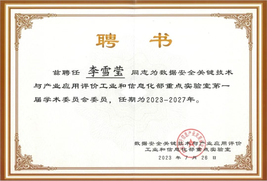 ׯÏÐÓÎÏ·ÀîѩӨ²©Ê¿ÊÜÆ¸Êý¾ÝÇå¾²Òªº¦ÊÖÒÕÓ빤ҵӦÓÃÆÀ¼Û¹¤ÒµºÍÐÅÏ¢»¯²¿ÖصãʵÑéÊÒµÚÒ»½ìѧÊõίԱ»áίԱ