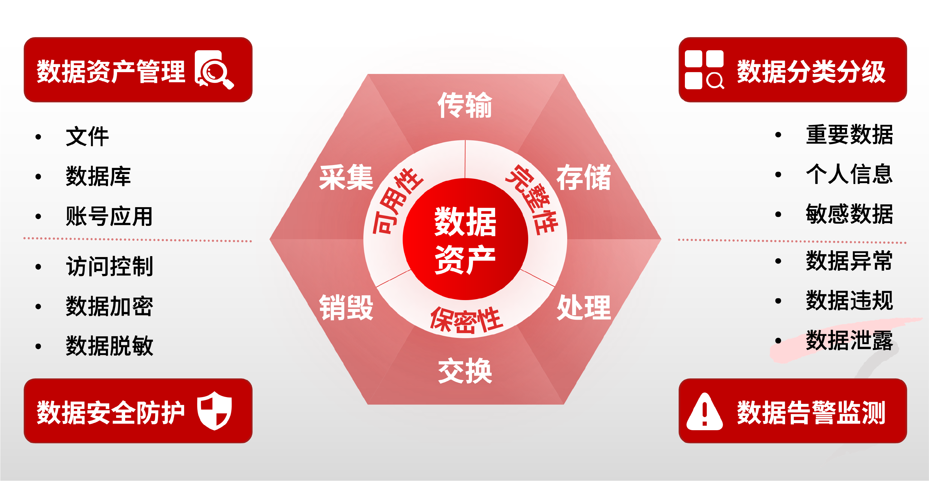 ¼Æ»®ÒÔ¡¶ÍøÂçÇå¾²·¨¡·¡¶Êý¾ÝÇå¾²·¨¡·¡¶Ð¡ÎÒ˽¼ÒÐÅÏ¢±£»£»¤·¨¡·ÒÔ¼°¸÷ÐÐÒµ±ê׼ΪָÒý£¬£¬£¬Ðγɡ°ÒÔÊý¾ÝΪÖÐÐÄ¡±µÄÊý¾ÝÇå¾²ÖÎÀí˼Ð÷£¬£¬£¬ÕûºÏÊý¾Ý×ʲúÖÎÀí¡¢Êý¾Ý·ÖÀà·Ö¼¶¡¢Êý¾ÝÇå¾²·À»¤ºÍÊý¾Ý¸æ¾¯¼à²âËĴ󽹵㹦Ч£¬£¬£¬Ö¼ÔÚÖª×ã²î±ðÓªÒµ³¡¾°ÖжÔÊý¾Ý·ÖÀà·Ö¼¶ÖÎÀíµÄ¶àÑù»¯ÐèÇ󡣡£