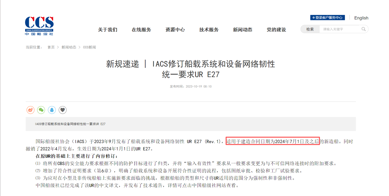 ÃæÁÙÈÕÒæÑÏËàµÄÇ徲Σº¦£¬£¬£¬¹ú¼Êº£ÊÂ×éÖ¯£¨IMO£©ÊýÄêǰ¾ÍÒªÇó³ÉÔ±¹ú½«ÍøÂçÇå¾²ÄÉÈë´¬²°Çå¾²ÖÎÀíϵͳ¡£¡£¡£¹ú¼Ê´¬¼¶ÉçлᣨIACS£©Ðû²¼µÄUR E26ÓëUR E27£¬£¬£¬Ã÷È·ÁË´¬²°ÕûÌå¼°Òªº¦ÏµÍ³µÄÍøÂçÈÍÐÔ±ê×¼£¬£¬£¬²¢»®¶¨2024Äê7ÔÂ1ÈÕºóÇ©ÊðÖÆ×÷ÌõÔ¼µÄ´¬²°¼°ÆäCBSϵͳ±ØÐè´ï±ê¡£¡£¡£º£ÄÚ²ãÃæ£¬£¬£¬Öйú´¬¼¶ÉçÁ¬Ïµ¹ú¼Ê±ê×¼ÓëIEC×°±¸¹æ·¶£¬£¬£¬¸üÐÂÐû²¼¡¶´¬²°ÍøÂçÇå¾²Ö¸ÄÏ£¨2024£©¡·£¬£¬£¬Îª´¬²°ÍøÂçÇå¾²½¨ÉèÌṩÁËÃ÷È·µÄÊÖÒÕÒÀ¾ÝÓëºÏ¹æÖ¸Òý¡£¡£¡£