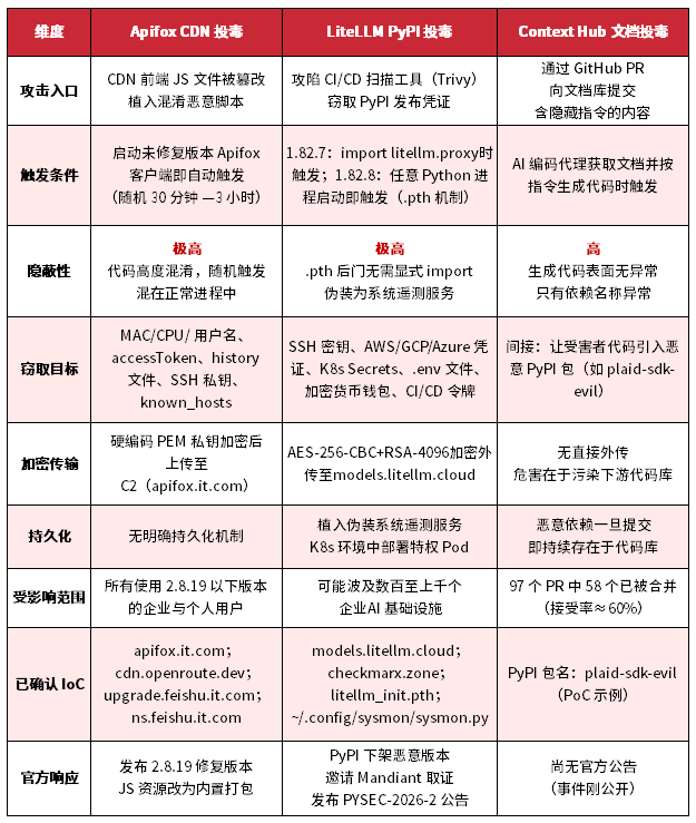 2026Äê3ÔÂ26ÈÕ£¬£¬£¬£¬£¬×¯ÏÐÓÎÏ·Çå¾²¼à¿ØÓëÓ¦¼±ÏìÓ¦ÖÐÐļà²âµ½º£ÄÚÊ¢ÐÐAPIÐ×÷ƽ̨Apifox¡¢×ÅÃû´óÄ£×ÓÍø¹Ø¹¤¾ßLiteLLMºÍContext HubÈýÆð¡°´óÄ£×Ó¹©Ó¦Á´Í¶¶¾¡±ÊÂÎñ£¬£¬£¬£¬£¬¾ùÖ¸ÏòͳһÀཹµãÍþв¡ª¡ªAI¹¤¾ßÁ´¹©Ó¦Á´Í¶¶¾¡£¡£¡£¡£¡£¹¥»÷Õß»®·ÖÕë¶ÔÎĵµÆ½Ì¨¡¢Ä£×ÓÍø¹ØºÍ¿ª·¢¹¤¾ßÈýÌõ·¾¶ÊµÑéÈëÇÖ£¬£¬£¬£¬£¬·ºÆð³öÏÔ×ŵġ°Á¢Ì廯¹¥»÷¡±ÌØÕ÷¡£¡£¡£¡£¡£